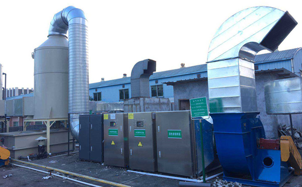 廢氣源→高效吸收塔(吸收掉漆霧、粉塵以及顆粒物為活性炭和光催化提供優(yōu)良的運行環(huán)境)→活性炭吸附塔(吸附部分苯甲苯二甲苯)→光催化設(shè)備(紫外線照射空氣產(chǎn)生臭氧氧化廢氣分子利于達標(biāo)排放)→高壓風(fēng)機(高壓的吸力作用下持續(xù)將廢氣抽出車間)→煙囪高空排放(也可低空排放)。