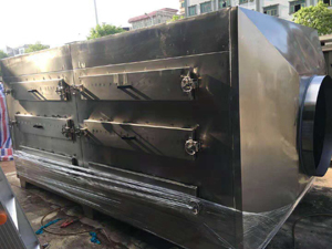 活性炭吸附和催化燃燒設備對于揮發(fā)性有機氣體的處理效果非常好,其凈化率可以達到98%。其工藝原理如下:涂裝廢氣通過過濾系統(tǒng)過濾掉大顆粒物質(zhì),然后使廢棄的達到吸附箱中。吸附箱中的活性炭會吸附掉廢氣中大部分有害氣體。吸附后的氣體在經(jīng)過催化燃燒設備,在較低的起燃溫度條件下發(fā)生無焰燃燒,并氧化分解為CO2 和H2O,同時放出大量熱量?;钚蕴课胶筮€可采用熱空氣再生法進行脫附。熱空氣再生對吸附系統(tǒng)材料的要求較低,利用熱空氣對活性炭纖維吸附的甲苯進行解吸,適宜的脫附工藝條件為溫度180℃,脫附時間40min,脫附空氣流速0.106m/s;通過建立示范工程對熱空氣解吸能耗進行分析,結果表明熱空氣脫附若采用蒸汽為加熱源時,每回收1kg溶劑約需電0.5kWh及1.6kg蒸汽,小于一般蒸汽直接加熱回收系統(tǒng)中的2~5kg蒸汽的用量,熱氮氣脫附是一種高效的方法,140℃脫附30min,氮氣流量為2.6m3/h,脫附率為90%左右。