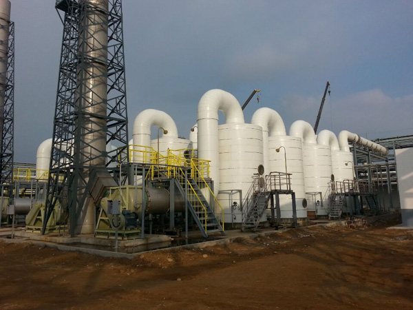 公司在生產(chǎn)加工的過(guò)程中,會(huì)產(chǎn)生大量的有機(jī)廢氣,其主要成分為:硫化氫、氮?dú)?、二氧化碳、氨、?duì)苯二酚、乙酸乙酯、甲醛、硝基苯、苯胺、氯苯、酸性物質(zhì)等,總風(fēng)量為:210000m³/h,而且廢氣還伴隨著惡臭氣味。